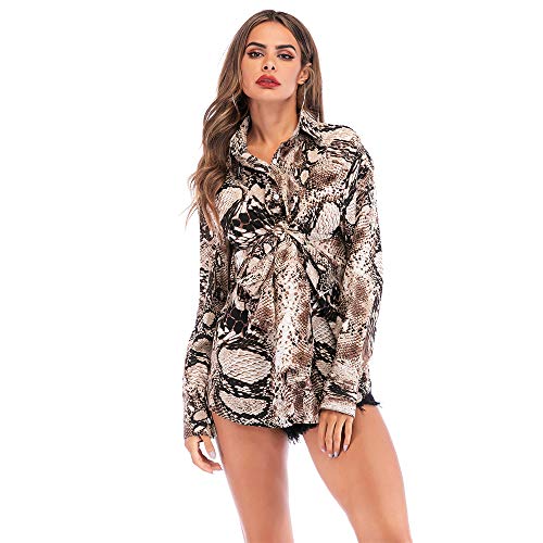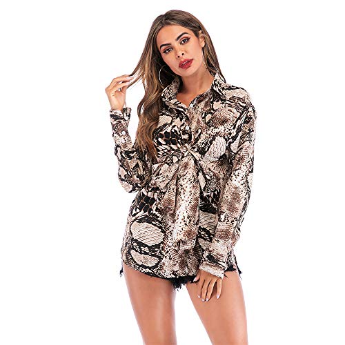 MOLINGXUAN Camisas para Mujer, impresión de la Serpiente Tops Manga Larga Camisa de la Gasa de Las Mujeres Flojas Suelto…