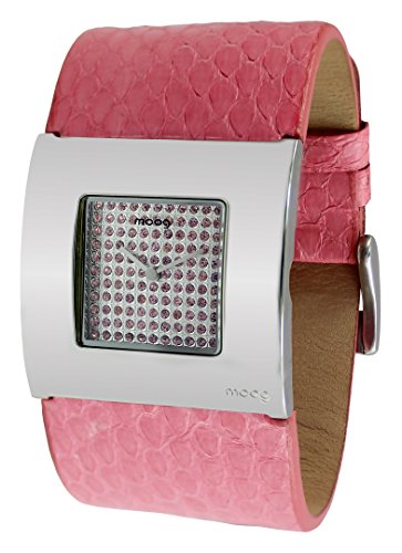 Moog Paris Petals Reloj para Mujer con Esfera Plateada, Correa Rosa de Piel de Serpiente de Agua Dulce y Cristales…