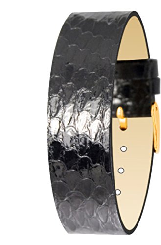 Moog Paris – Pulsera de piel de serpiente para mujer, color negro, hebilla de acero dorado, Moog#TTC#strap SN-01G