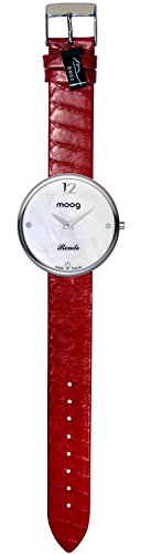 Moog Paris Ronde Vogue Reloj para Mujer con Esfera Nácar Blanca, Correa Roja Oscura Intercambiable de Piel de Serpiente…