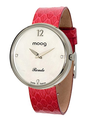 Moog Paris – Ronde Vogue – Correa de reloj de mujer con esfera color blanco madre de perla, rojo en auténtica piel de serpiente – Correa intercambiables – Fabricado en Francia – m41671 – 017