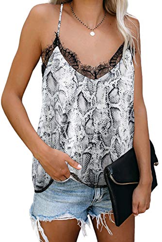 Mosucoirl Camisa sin mangas con cuello en V y encaje con cuello en V Camisa informal sin mangas Camisa blusa ligera sexy Tank top