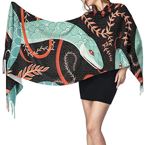 Mujer Cachemira Bufanda De Pashminas Larga Suave y Cálido Chales Estolas Fulares Bufanda Serpiente y flor 77×27 in