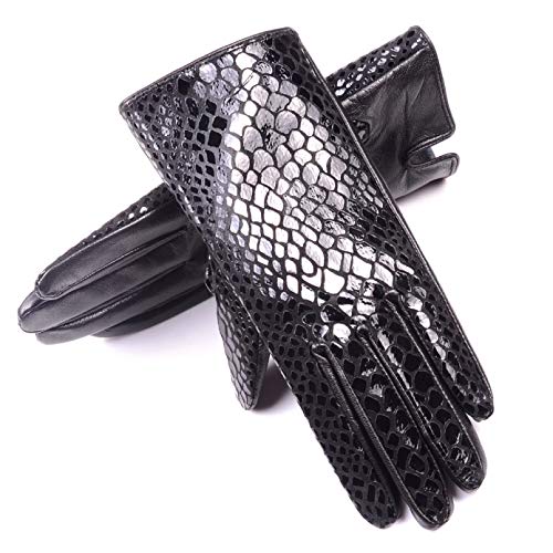 N / A Guantes Accesorios de Moda Calidez Deportes al Aire Libre a Prueba de Viento Mujer Damas 100%   Cuero Estampado de Serpiente Cuero Invierno Forro Fino Guantes Cortos