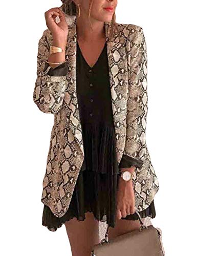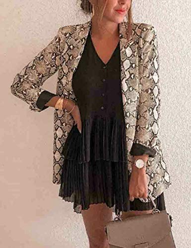 N / D Mujeres Sexy Chaqueta Frontal Abierta Estampado de Piel de Serpiente Slim Casual Business Blazer Traje Chaqueta…