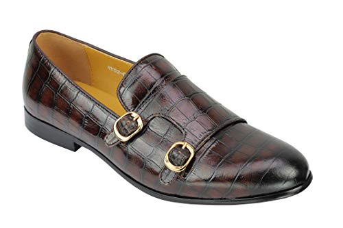 Negro De Cuero Real De Deslizamiento De Brown De Los Hombres En Doble Correa Monk Holgazán Ocasional Elegante De Piel De…