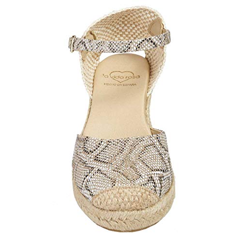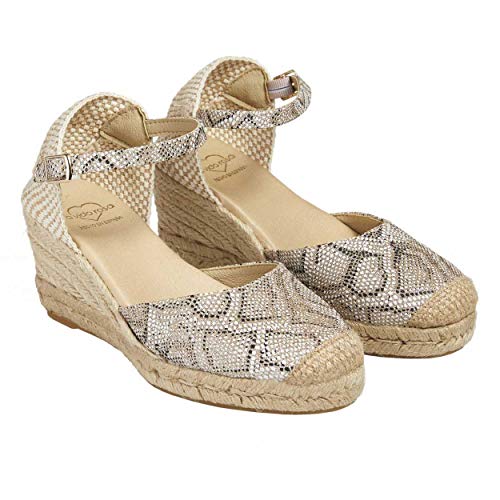 Alpargata de Cuña con tejido Tecno y piso de cuerda con plantilla textil acolchada.