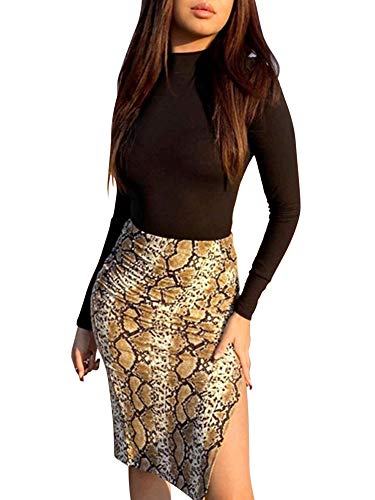 nvIEFE Vestido sexy con estampado de serpiente, hasta la rodilla, falda de cintura alta, dobladillo dividido