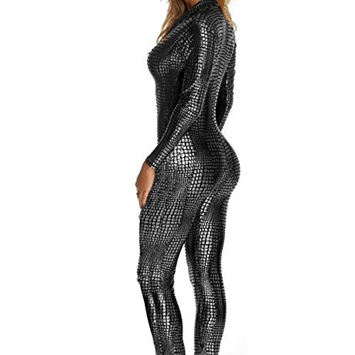 Overall Mujer Largos Moda Vintage Serpientes De Festival Patrón de moda Monos Otoño Invierno Manga Larga V-Cuello Con Cremallera Skinny Elegante Club Party Playsuit Mono