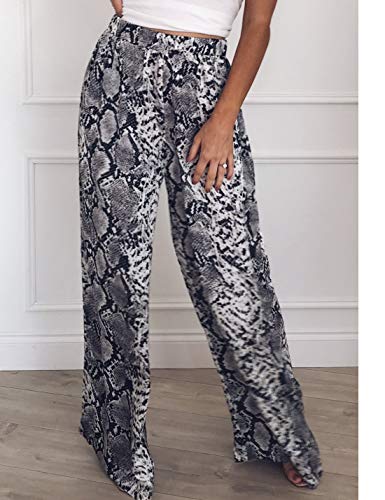 Pantalones de cintura alta, pantalones sueltos, pantalones largos casuales, tinte de serpiente y leopardo, cintura elástica, ajuste suelto, pantalones de salón, Moda y Moda, pantalones sexy