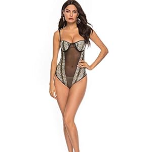 Lencería Sexy para Mujer Ropa De Dormir Patrón De Piel De Serpiente Sling Teddy Leopardo De Malla Body Abierto Frontal…