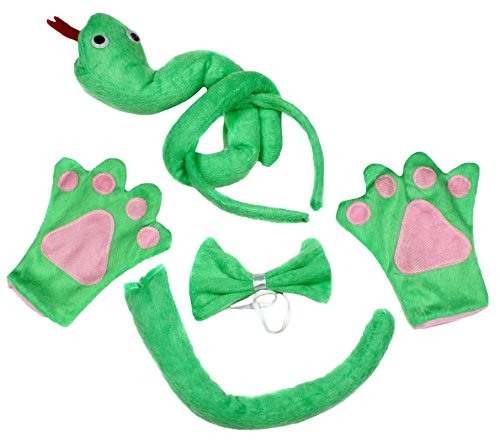 Petitebelle Disfraz de serpiente verde para niños, 4 unidades