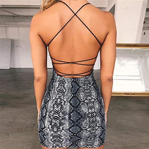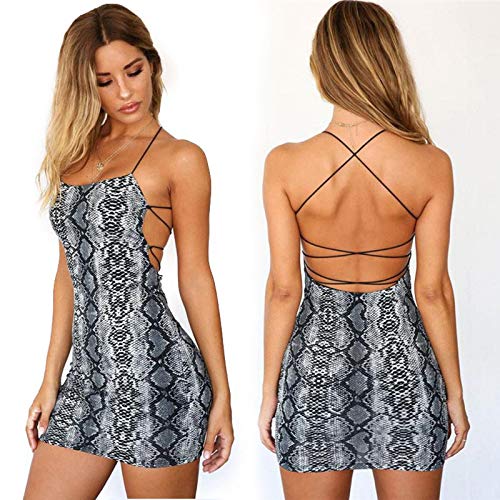 PLTyfsail Vestido honda para mujer con hombros descubiertos y tiras de piel de serpiente impresa de una sola pieza…