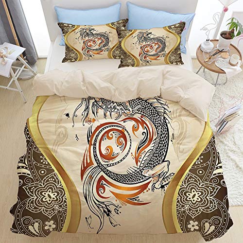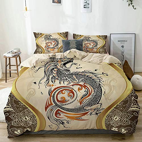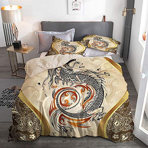 Popsastaresa Bedding Juego de Funda de Edredón,Beige,Impresión mitológica de la Serpiente del dragón,Funda de Nórdico y…