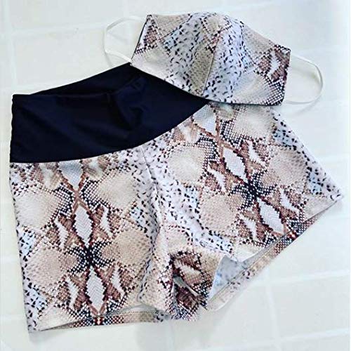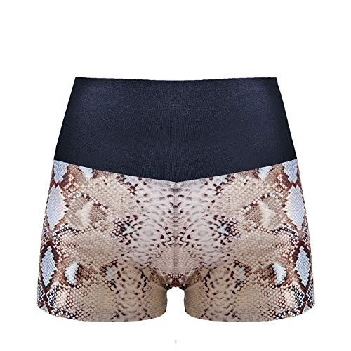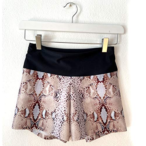 Fabuloso pantalón corto con estampado de serpiente, de cintura alta, fabricado con nailon regenerado. La amplia cintura de doble cara negra proporciona comodidad y apoyo. Ideal si estás haciendo ejercicio o yoga. Recomendamos estos pantalones cortos si prefiere un poco más de cobertura.