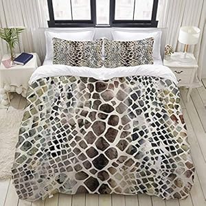 Luoquan Ropa de Cama – Funda nórdica Patrón de Serpiente Animal Skin Artwork Acuarela Pintura Cocodrilo,Microfibra Nuevo…