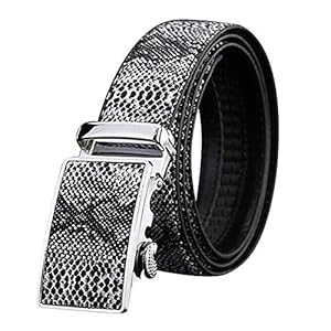 Aemiy Hombre Automático Hebilla Ratchet Cinturón de Cuero Piel de Serpiente Estampado Ajuste Exacto Regalo – Negro…