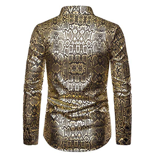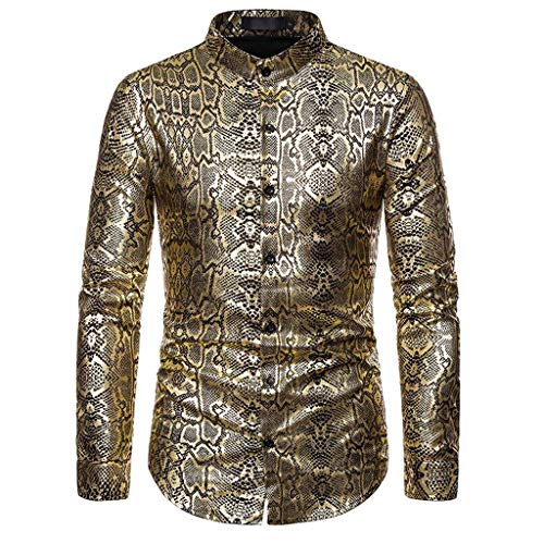 DISEÑO ÚNICO: Esta camisa de estilo de manga larga cuenta con un cuello alto, abotonada, estampado de serpiente y está de moda y casual.