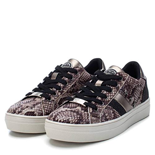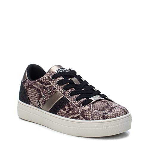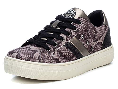 Zapatilla de mujer con cordones de la marca Refresh. Zapatilla fabricada en material similar a la piel con tachas decorativas en forma de estrella en los laterales. De fácil limpieza y muy ligera. Suela blanca de goma de 3 cm. Zapatilla de estilo urbano, tendencia para esta temporada. Muy combinable con cualquier estilo.