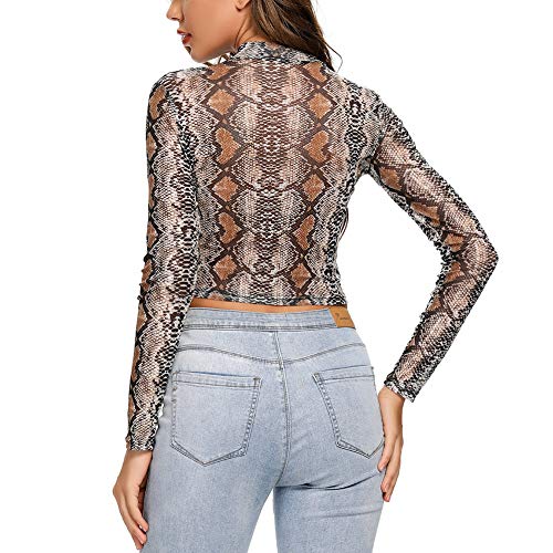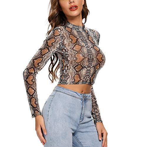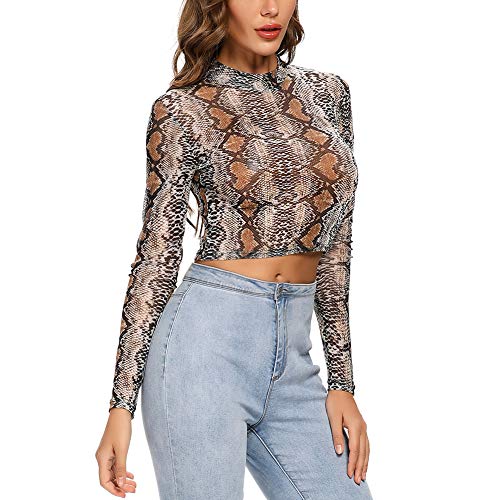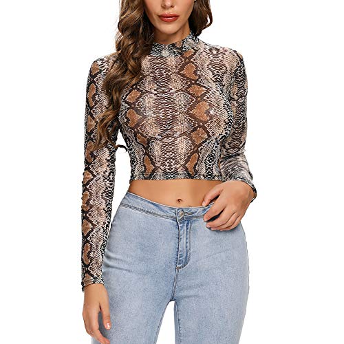 Ritera Camiseta Corta de Manga Larga para Mujer Fiesta Sexy con Estampado de Leopardo/Estampado de Serpiente/Estampado…