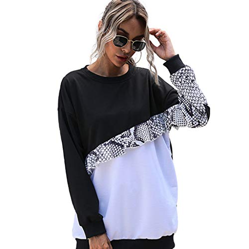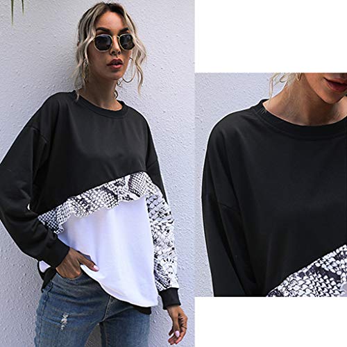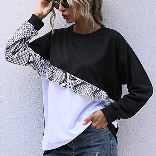 Mangas largas, cuello redondo, cierre de pullon casual, bloque de color, diseño de parches de piel de serpiente.