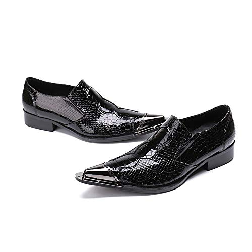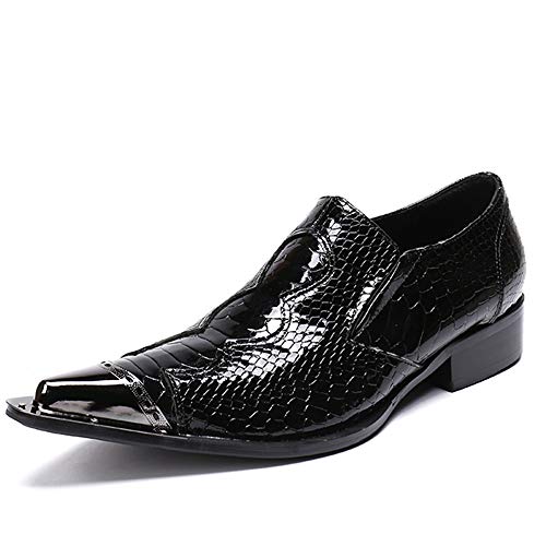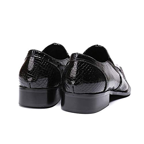 ❤ Estilo: Cuero genuino de alta calidad, diseño de textura de piel de serpiente de moda, cómodo, clásico noble negro, cabeza de metal, estilo británico de negocios informal.