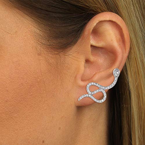 Pendientes de serpiente únicos (clip para oreja), hechos de plata de ley 925, adornados con circonitas blancas. La condición perfecta que no es para esta pieza de joyería es un agujero de oro. La parte superior del soporte está montada en el simple auricular. La corriente procedente de la tendencia de los Estados Unidos debe tener una forma absoluta. Estos puños dorados provienen de nuestra actual gama de SilberDream.