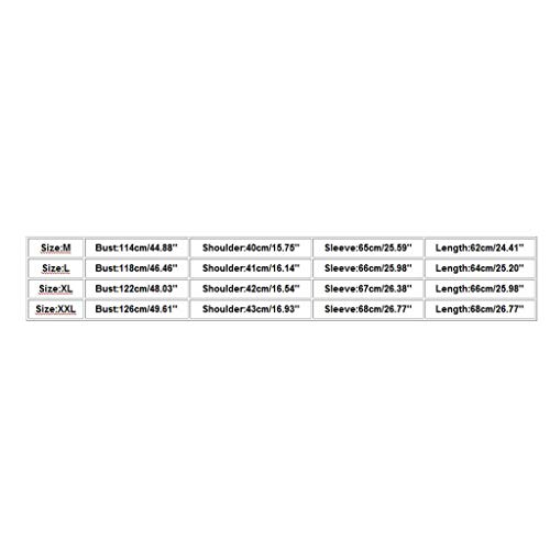 Talla XL: pecho: 112 cm, hombro: 40 cm, manga: 62 cm, longitud: 60 cm.