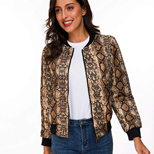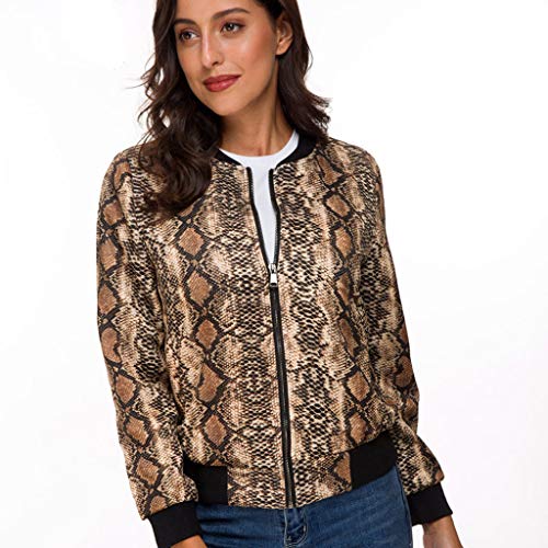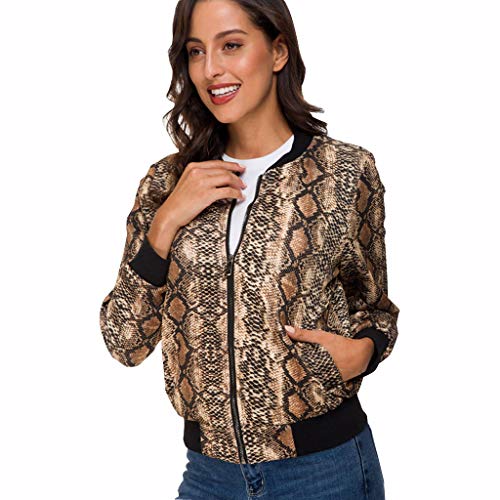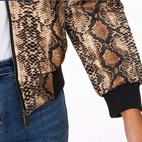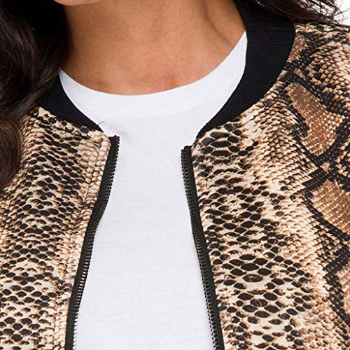 Chaqueta de piel de serpiente para mujer con cremallera frontal y lentejuelas, manga corta, estilo casual