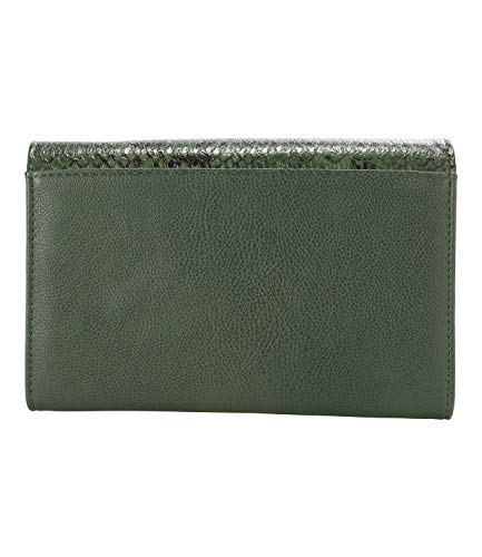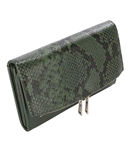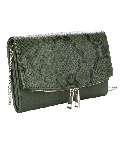 Este pequeño bolso de mano con estampado de serpiente verde es una atracción absoluta en la fiesta, pero también en el paseo por la ciudad. Moderno y práctico: en la moderna pieza encaja más de lo que se sospecha a primera vista. Solapa con cremallera, cierre de botón de presión y compartimento para tarjetas integrado para mayor seguridad y la cadena de agarre plateada extraíble te permite elegir: bolso de mano o bolso de mano, ¿qué puede ser hoy? Tamaño: 20 x 12,5 cm.