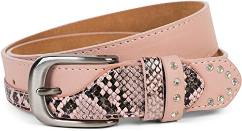 Cinturón elegante con aplicación de estrás y detalles en óptica de piel de serpiente de styleBREAKER.