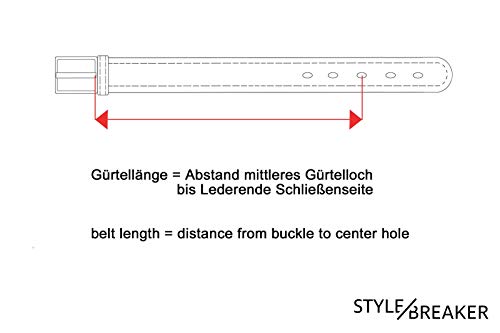 – La longitud del cinturón es la distancia entre el orificio central y el extremo de cuero en el lado del cierre