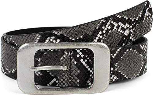 styleBREAKER cinturón de mujer en óptica de piel de serpiente con una gran hebilla rectangular, acortable 03010101