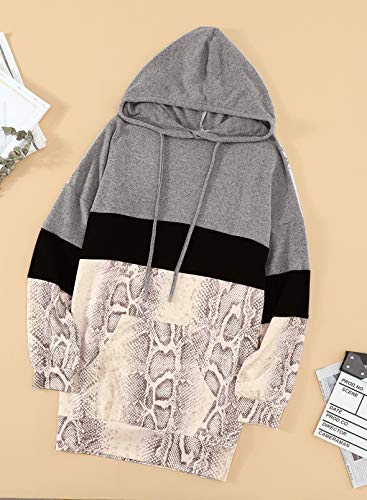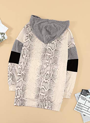 Sudadera casual con capucha y cuello redondo con estampado de piel de serpiente y cordón de color para mujer
