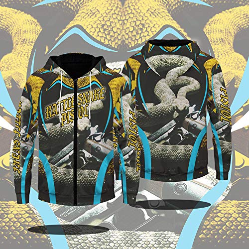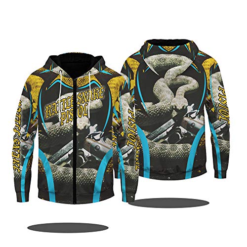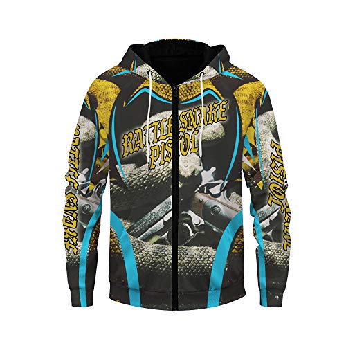 Sudaderas con Capucha,Serpiente De Cascabel Impresión 3D Hombres Sudaderas con Cremallera Mangas Largas Moda Sudadera…