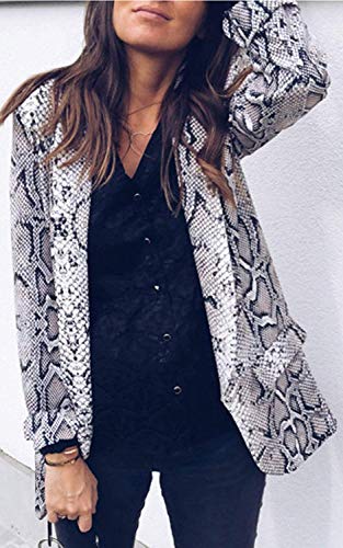 Tomwell Mujeres Blazer Elegante Estampado de Leopardo Oficina Negocios Parte Traje de Chaqueta Slim Fit Outwear Tops