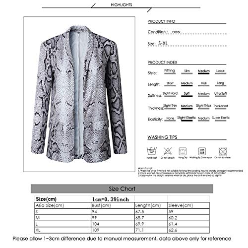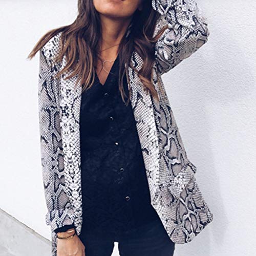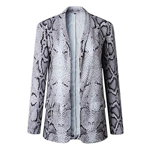 ✔ 【Diseño único】: chaqueta de manga larga para mujer, otoño, invierno, casual, de manga larga, con parte frontal, abierta, chaqueta de punto abierto, para mujer, delgada, corta, chaqueta, solapa, estampado de piel de serpiente, estampado de leopardo, diseño especial que te hace más sexy y atractiva.