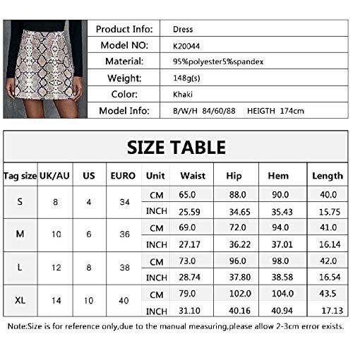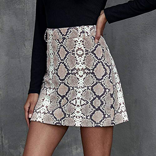VBHJK Falda para Mujer,Caqui Cintura Alta Simulación Patrón De Serpiente Falda Lápiz Corta Moda Sexy Primavera Otoño…