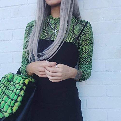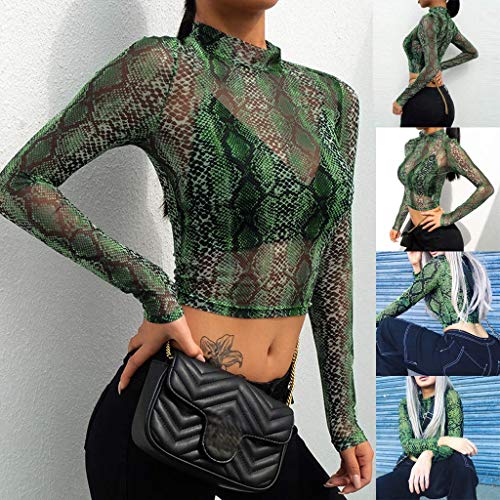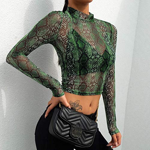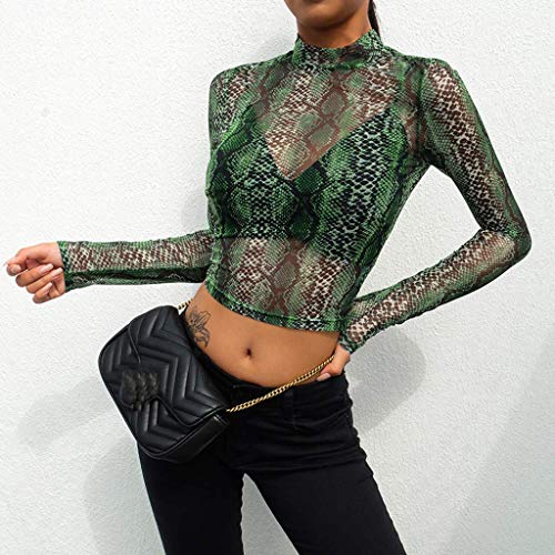 Camisa De Las Señoras De La Blusa De Manga Larga Transparente Del Cuerpo Camiseta Túnica Tops Patrón Mirt Serpiente Cosecha Corta Tops Slim Fit Club De Camisas De Cuello Alto Desgaste De Malla Remata