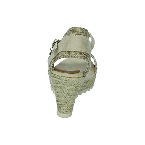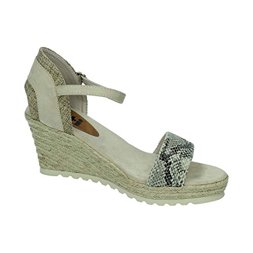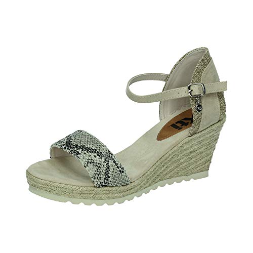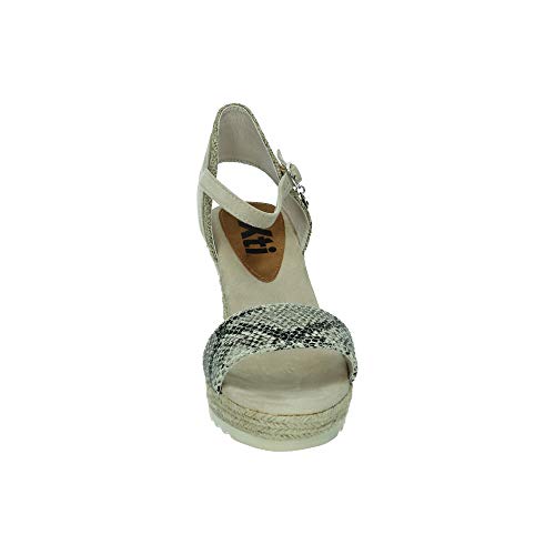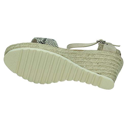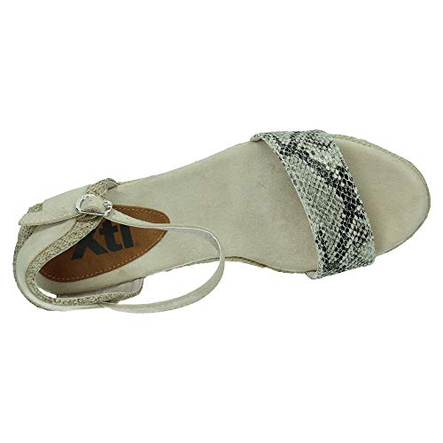 Sandalias de cuña muy bonitas con estampado de serpiente en la parte delantera y cierre de hebilla, con cuña tipo esparto y plantilla comoda. Ideales para esta temporada. Fabricados por la marca Xti.