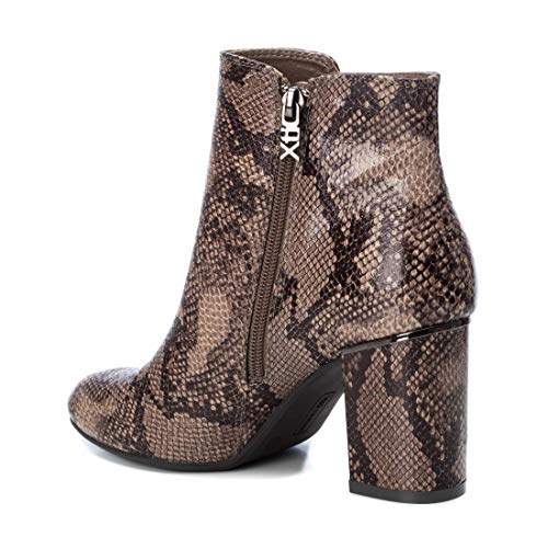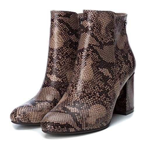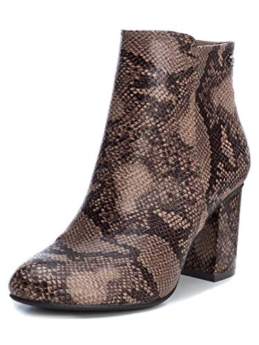 Botín de mujer con tacón ancho de 8 cm. Material realizado con material similar a la piel y estampado de serpiente. Botín muy cómodo para llevar a diario. El estampado print animal viene con fuerza esta temporada y no podrás resistirte a tener uno en tu armario. Dale un toque diferente a tu look con este botín de Xti.