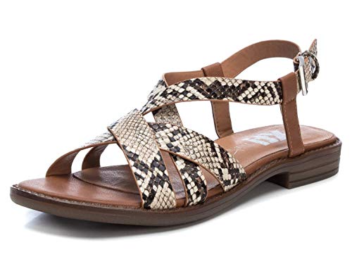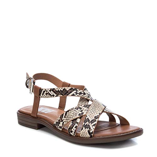XTI – Sandalia para Mujer – Sandalia con Cierre de Hebilla – Tacón 2 cm – Color Serpiente – Talla 40