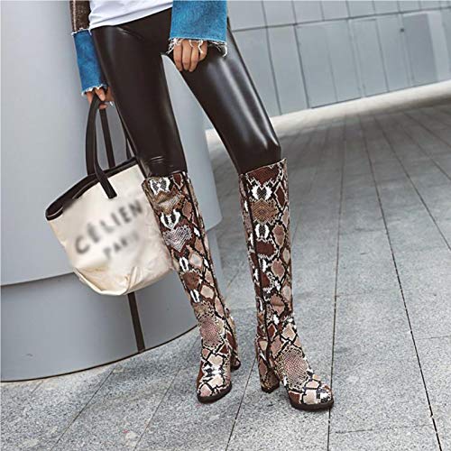 YHZQ 2020 Mujeres De Alto De Rodilla Botas, Patrón De La Serpiente De Cuero Tacones Altos Botas De Moda brown-EU39