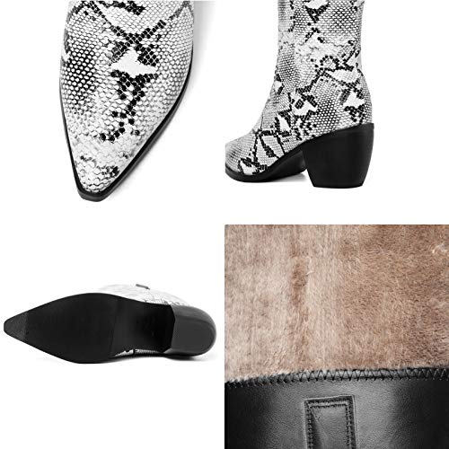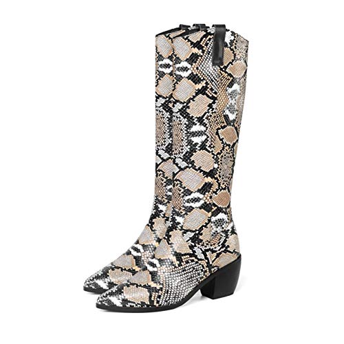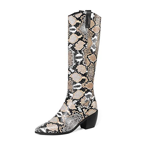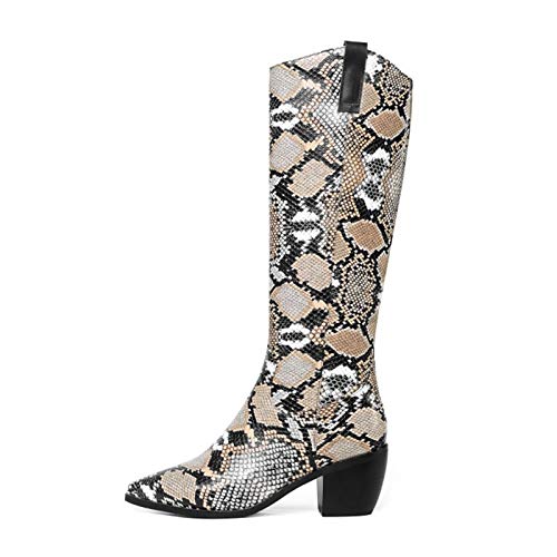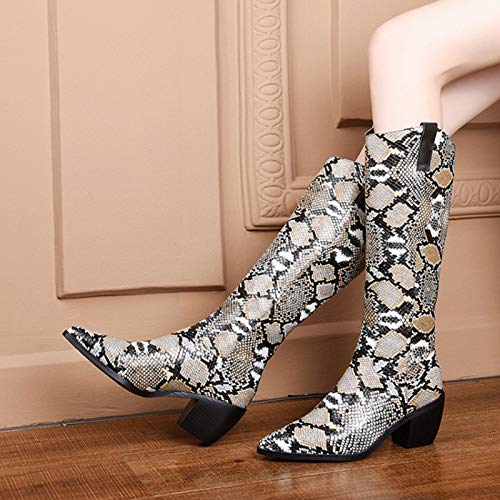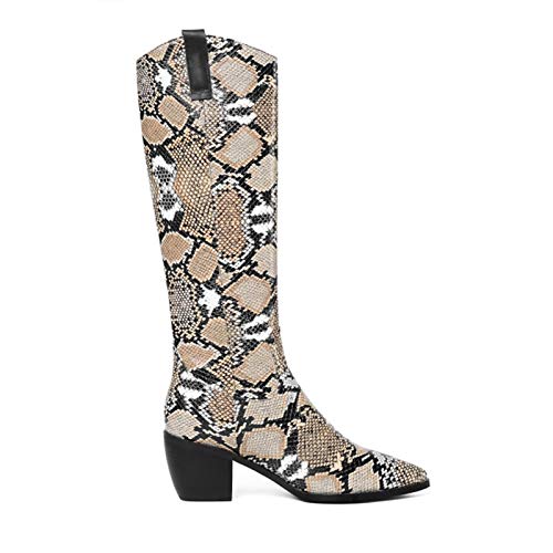 YHZQ 2020 Rodilla Botas Altas Mujer, Botas De Serpiente Patrón De Cuero con El Bloque del Talón, Otoño Invierno sobre La…