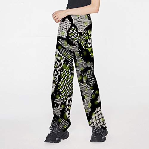 YSDSBM Cintura elástica Wed Leg Pantalones Femeninos Harajuku Verde Oscuro Piel de Serpiente Impreso Pantalones de Mujer…