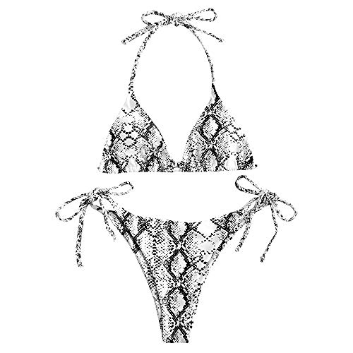 Bikini de tirantes, cintura baja, piel de serpiente, estampado de piel de serpiente
