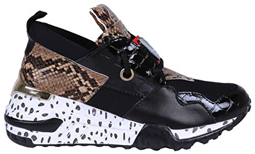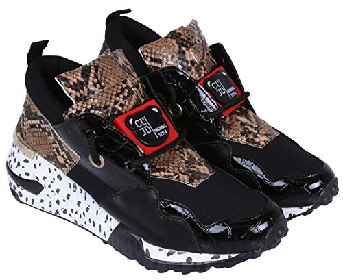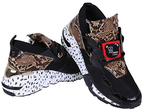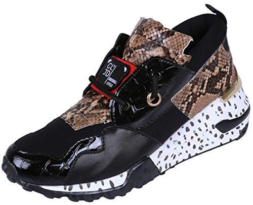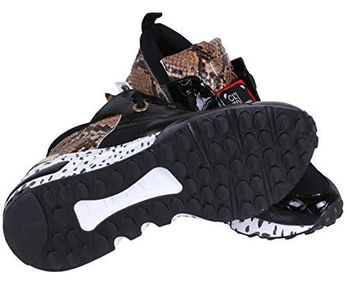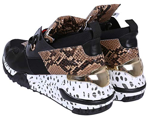 Zapatillas Altas, Sneaker Femeninas, Piel de Serpiente-Negro Vices