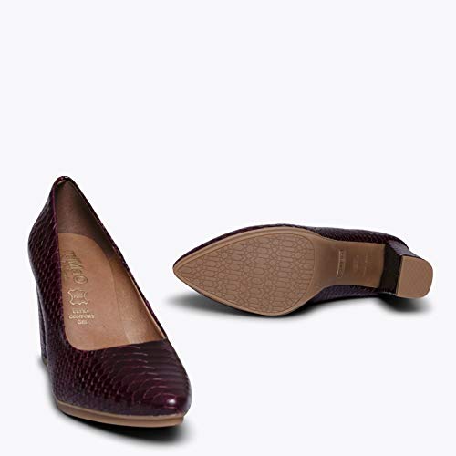Zapatos de piel de miMaO. El modelo clásico, el Urban de miMaO, reconvertido en la temporada de zapatos de mujer Otoño Invierno 2020 – 21. Un zapato de tacón cómodo gracias a nuestra tecnología del confort, nuestra plantilla de piel Gota Ultra Confort Gel, protegerá el metatarso en cada uno de tus pasos.