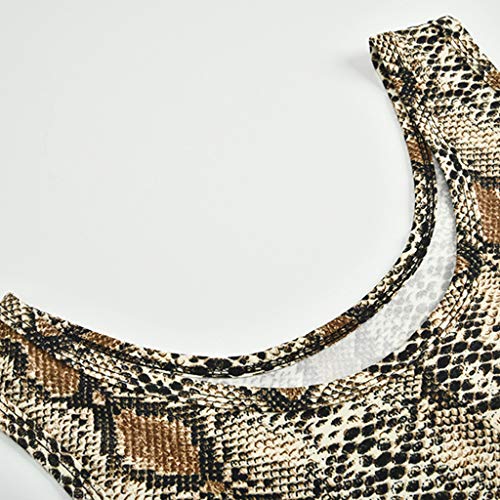 ✌Alto rendimiento: impresión digital de piel de serpiente bohemia, cintura alta de imperio elástico, estilo de camiseta sin mangas, de una pieza, puede ser excelente debajo de las chaquetas o solo